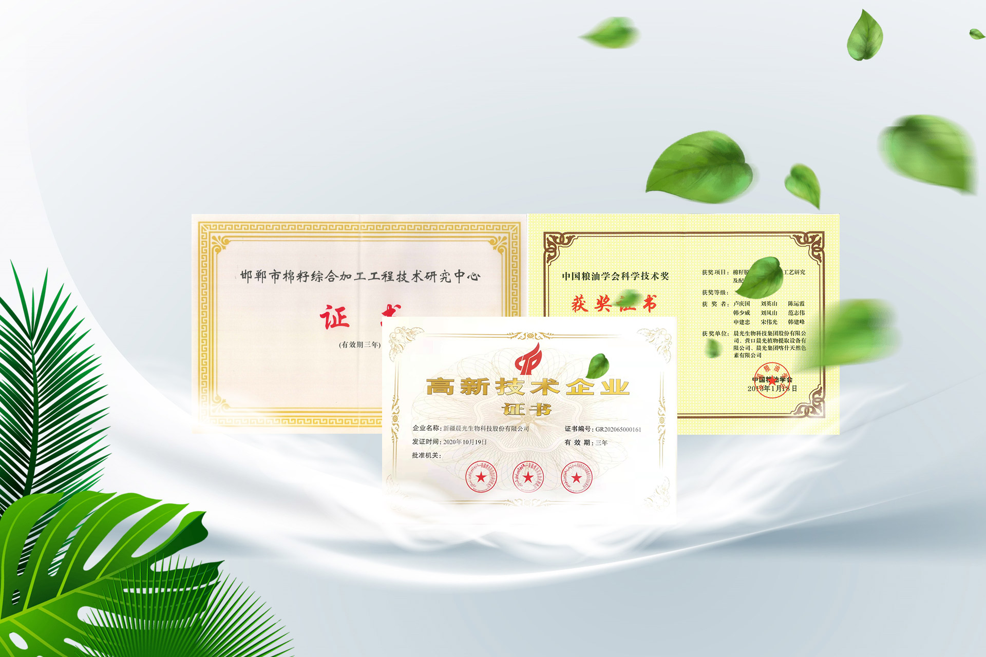 自主知識產(chǎn)權(quán)的專利93項(xiàng),其中發(fā)明專利18項(xiàng),實(shí)用新型專利75項(xiàng)。參與制定了國家供銷合作行業(yè)標(biāo)準(zhǔn)GH/T 1262—2019(棉籽殼)、國家農(nóng)業(yè)行業(yè)標(biāo)準(zhǔn)(棉籽品質(zhì)快速測定 近紅外法)
